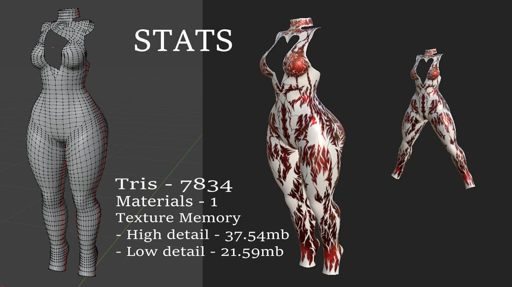 This outfit is made from scratch, created in blender, is fully rigged, and uses VRCFury to allow easy install onto your Nebula or Celeste avatar.