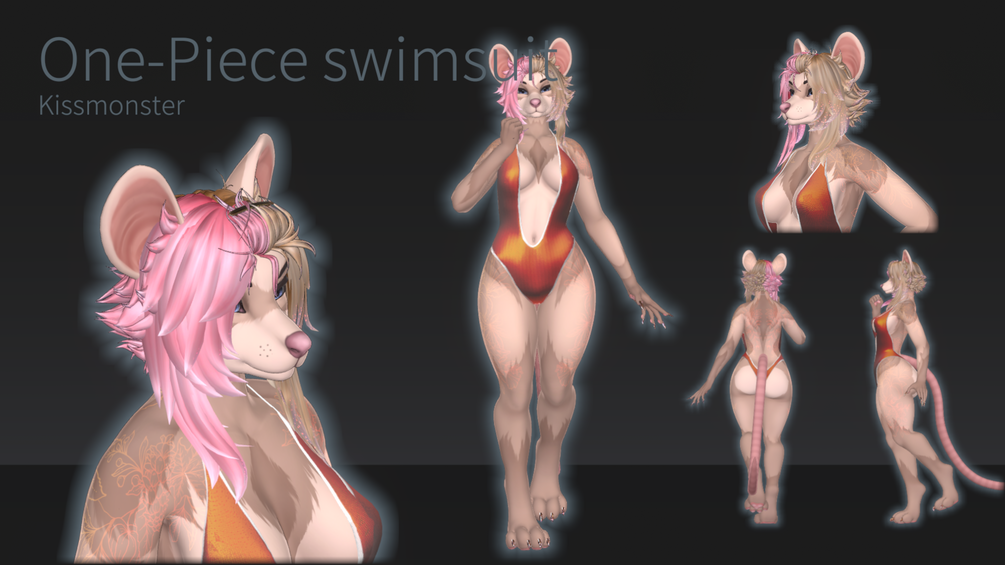 One-Piece swimsuit for Foxipaws' Aurora, Pepper, and Celeste/Calypso (VRCFury drag-and-drop ready)